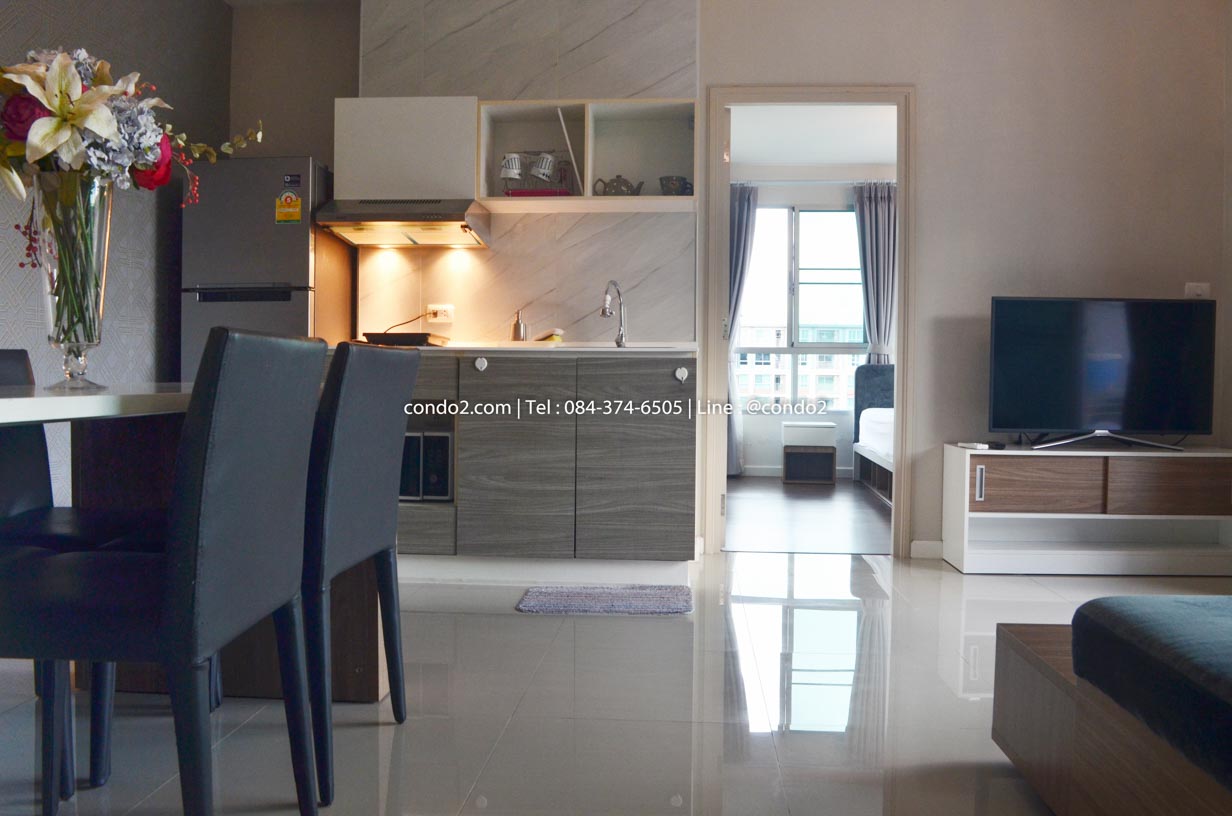 2 ห้องนอน 2 ห้องน้ำ ห้องนั่งเล่น เค้าเตอร์ครัว ระเบียง