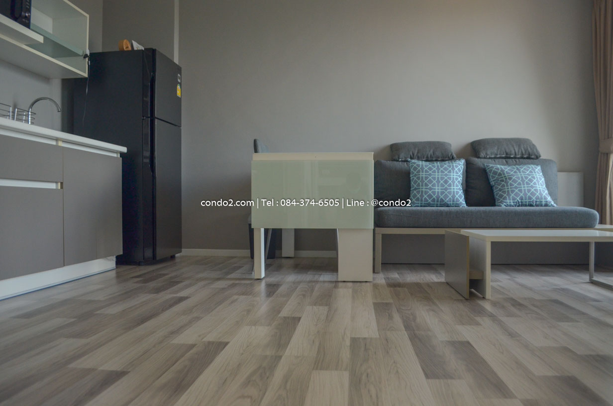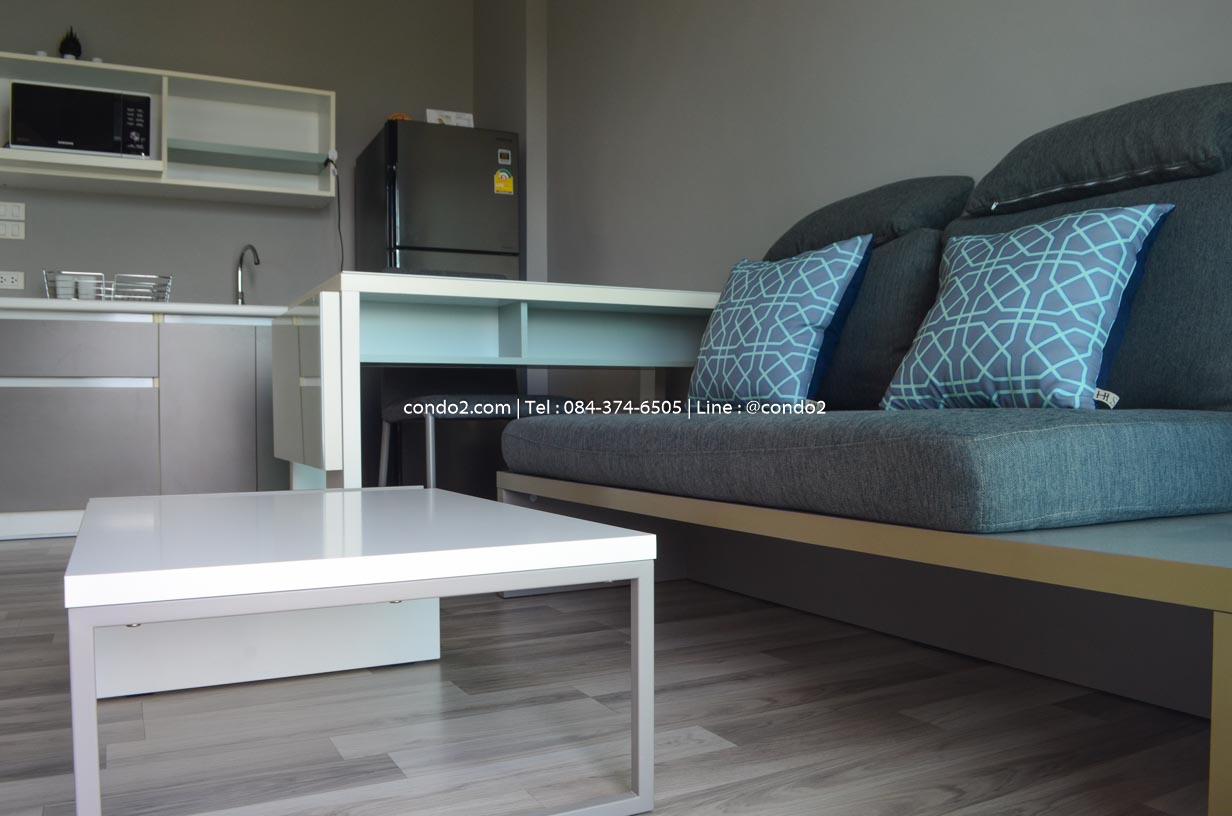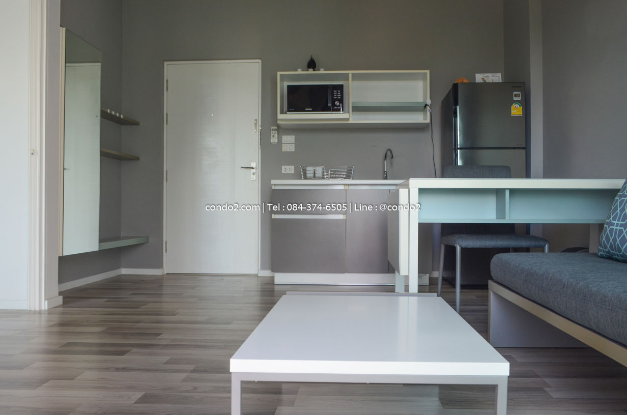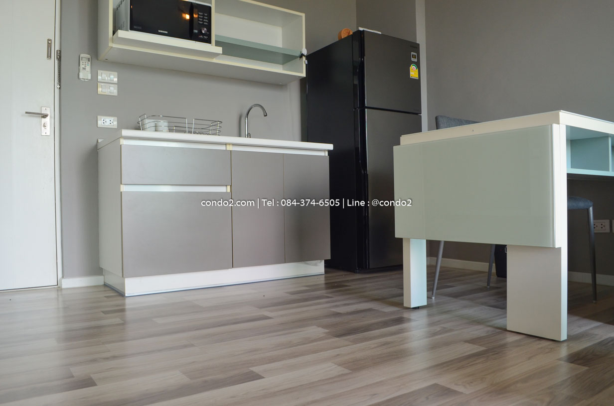 ขนาด 34 ตารางเมตร ชั้น 7 แบบ 1 ห้องนอน 1 ห้องน้ำ 1 ห้องนั่งเล่น เค้าเตอร์ครัว ระเบียง