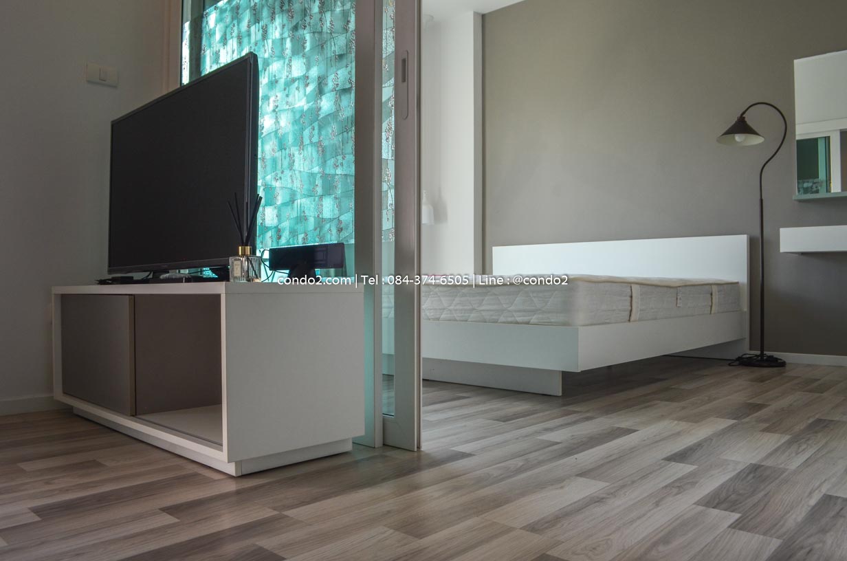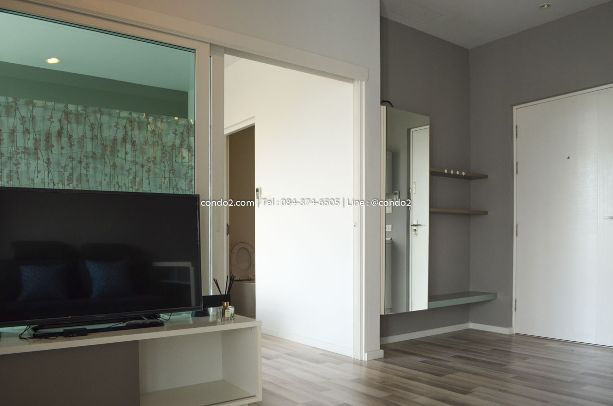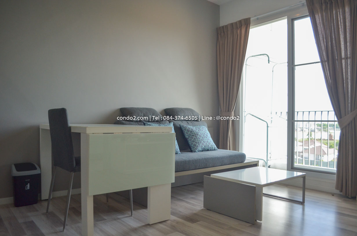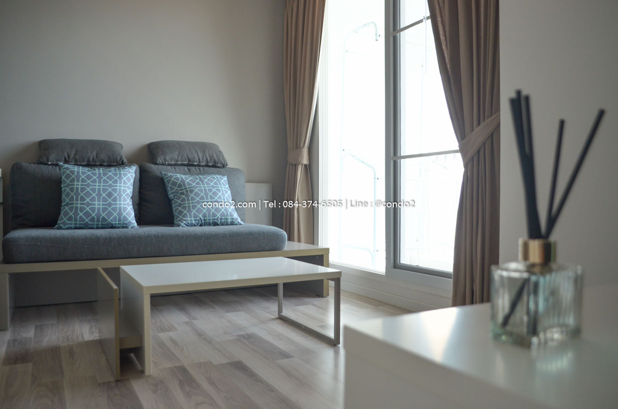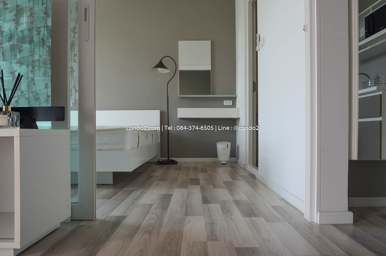 ขนาด 34 ตารางเมตร ชั้น 7 แบบ 1 ห้องนอน 1 ห้องน้ำ 1 ห้องนั่งเล่น เค้าเตอร์ครัว ระเบียง